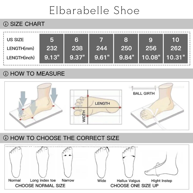 True to US sizing; see the size chart above. Size discrepancy? Choose the next size up. Need help? Email us 24/7 at elarabelleshoe@gmail.com.